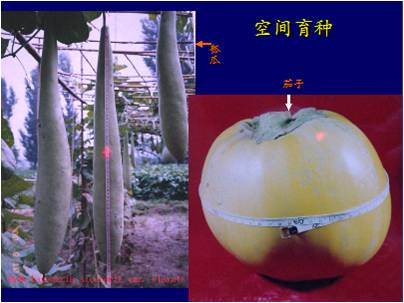 我國多次利用回收衛(wèi)星和載人飛船做空間育種試驗(yàn)取得了許多可喜的成果。利用空間的強(qiáng)輻照和微重力效應(yīng)使種子或苗圃產(chǎn)生基因突變?;厥蘸笕〉酶鞣N效果。譬如黃瓜種子,種植后可長到52cm、重達(dá)1.8kg;北京的牛蛋茄子腰圍可達(dá)60cm。(見圖)所以人們都會(huì)認(rèn)為太空育種都會(huì)使植物變大。實(shí)際上太空輻照后的種子,種植后許多未有變化或者會(huì)變?。ㄈ鐖D);其機(jī)理是什么?中科院、農(nóng)科院的科學(xué)家和國際上許多科學(xué)家都在積極探索研究。我認(rèn)為這是一項(xiàng)非常有意義的科研課題,如果將機(jī)理搞清楚,將是對(duì)人類生存一大貢獻(xiàn)。這個(gè)問題我曾在中國科技舘做了一次科普?qǐng)?bào)告。引起了聽眾的議論。當(dāng)場(chǎng)我收到一張紙條(見圖)說:“爺爺別急問題沒解決沒事,有我們呢!”