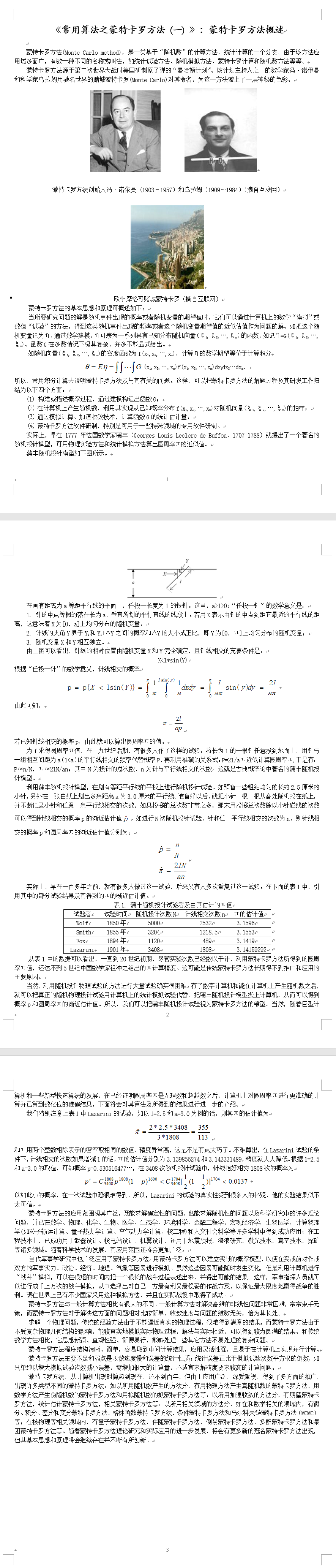 常用算法之蒙特卡羅方法 (一) :蒙特卡羅方法概述