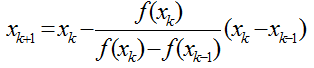 ?稱為弦截迭代公式,相應(yīng)的迭代法稱為弦截法。可以證明,弦截法具有超線性收斂,它與前面介紹的一般迭代法一樣都是線性化方法。一般迭代法在計(jì)算xk+1時只用到前一步的值xk,故稱之為單點(diǎn)迭代法;而弦截法在求xk+1時要用到前兩步的結(jié)果xk-1和xk,使用這種方法必須給出兩個初始近似根x0 , x1,這種方法稱為多點(diǎn)迭代法。