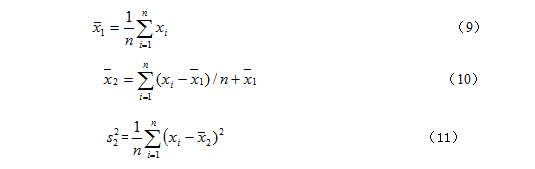 (5)、(6)兩式恒等,同時(shí)成立?,F(xiàn)在要問,對一組給出的數(shù)據(jù)(3),在計(jì)算機(jī)上用(5)和(6)二式分別進(jìn)行計(jì)算方差時(shí),結(jié)果是否還完全相同?和(4)、(5)、(6)相比,能否給出均值和方差計(jì)算結(jié)果誤差更小、計(jì)算所用計(jì)算機(jī)機(jī)時(shí)更省的公式或算法?