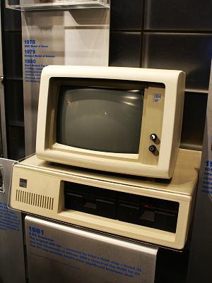 作為第一款PC產(chǎn)品,1981年的IBM PC只有一個單色顯示器,沒有硬盤。它配置的是主頻為4.77 MHz的英特爾8088微處理器,內(nèi)含29,000多個晶體管,一個容量為160KB的5.25英寸軟盤驅(qū)動器,64KB的隨機存取內(nèi)存(RAM)可擴展到256KB。軟件是面向純文本的,運行起來單調(diào)乏味,包含PC-DOS、微軟BASIC、VisiCalc、UCSD Pascal、CP/M-86等。唯一的聲音是從系統(tǒng)里的一個小小揚聲器發(fā)出的蜂鳴聲。IBM PC的大多數(shù)早期用戶選用的是單色顯示系統(tǒng),需要花費大約3,000美元。如果選擇彩色顯示器和圖形卡,價格約4,500美元。