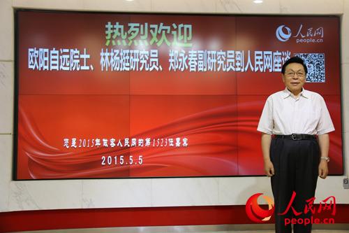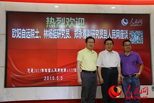 人民網(wǎng)北京6月10日電 5月5日,中國科學(xué)院院士歐陽自遠(yuǎn)、中國科學(xué)院地質(zhì)地球化學(xué)研究所研究員林楊挺、國家天文臺副研究員鄭永春做客人民網(wǎng),就“中國登月夢 未來智慧城”相關(guān)話題與網(wǎng)友在線交流。