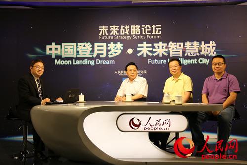 歐陽自遠(yuǎn)等嘉賓在直播間訪談(人民網(wǎng) 劉子溪攝)