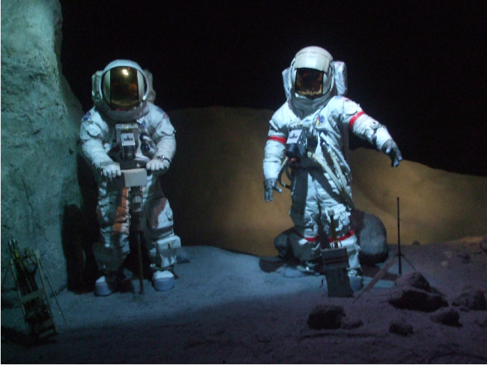 宇航員在月球表面進行鉆探作業(yè)