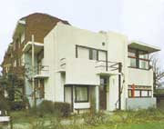 風格派和構成派熱衷于幾何形體、空間和色彩的構圖效果。作為繪囤和雕刻藝術,他們的作品不反映客觀事物,因而是反現(xiàn)實主義的。最能代表風格派建筑特征的是荷蘭烏德勒支(Utrecht)地方的一所住宅。
