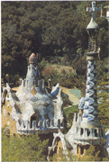居埃爾公園中的建筑是高迪創(chuàng)作生涯成熟時期的代表作,最充分地表現(xiàn)了他的美學(xué)思想。公園入口處的兩座小樓的屋頂上也有許多小塔和突出物,造型非常古怪,它的外表鑲嵌著白、線、棕、藍、綠、橘紅等色的碎瓷片,圖案怪異。多柱大廳內(nèi)的柱子造型規(guī)整,排列有序,這在高迪的作品中是罕見的。屋頂平臺周圍的矮墻曲折蜿蜒,墻身上貼著五顏六色的瓷片,組成怪異莫名的圖案,仿佛一條彎曲蜷伏的巨蟒。