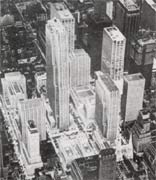 美國(guó)洛克菲勒財(cái)團(tuán)投資建造的大型商業(yè)娛樂和辦公建筑群,在紐約曼哈頓島中部,占地8.9公頃,共有建筑19座,建于1931~1940年。設(shè)計(jì)單位包括三個(gè)建筑師事務(wù)所,主要設(shè)計(jì)人有R.胡德、H.W.科比特、W.K.哈里森等。