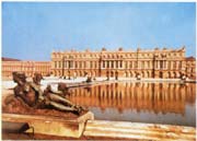凡爾賽宮原為法王的獵莊,1661年路易十四進行擴建,到路易十五時期才完成,王宮包括宮殿、花園與放射形大道三部分。宮殿南北總長約400米,中央部分供國王與王后起居與工作,南翼為王子、親王與王妃命婦之用,北翼為王權辦公處并有教堂、劇院等等。建筑風格屬古典主義。立面為縱,橫三段處理,上面點綴有許多裝飾與雕像,內部裝修極盡奢侈豪華的能事。居中的國王接待廳,即著名的鏡廊,長73米,寬10米,上面的角形拱頂高13米,是富有創(chuàng)造性的大廳。廳內側墻上鑲有17面大鏡子,與對面的法國式落地窗和從窗戶引入的花園景色相映成輝。宮前大花園自1667前起由勒諾特設計建造,面積6.7平方公里,縱軸長3公里。園內道路、樹木、水池、亭臺、花圃、噴泉等均呈幾何形,有它的主軸、次軸、對景等等,并點綴有各色雕像,成為法國古典園林的杰出代表。三條放射形大道事實上只有一條是通巴黎的,但在觀感上使凡爾賽宮有如是整個巴黎,甚至是整個法國的集中點。
