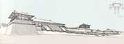 2.建筑群處理愈趨成熟。建筑也加強(qiáng)了突出主體建筑的空間組合,強(qiáng)調(diào)了縱軸方向的陪襯手法。全宮自南端丹鳳門起,北達(dá)宮內(nèi)太液池蓬萊山,為長達(dá)約1600余米的中軸線,軸線上排列全宮的主要建筑:含元殿、宣政殿、紫宸殿,軸線兩側(cè)采取大體對稱的布局。如不計(jì)入內(nèi)苑部分,從丹鳳門到紫宸殿也約1200米,這個(gè)長度略大于從北京故宮天安門到保和殿的距離。含元殿利用的突起的高地(龍首原)作為殿基,加上兩側(cè)雙閣的陪襯和軸線上空間的變化,造成朝廷所需的威嚴(yán)氣氛。