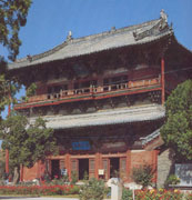 獨樂寺在河北薊縣縣城內(nèi),相傳始建于唐,后經(jīng)遼統(tǒng)和二年(公元984年)重建,現(xiàn)存遼代建筑尚有山門及觀音閣二處。