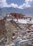 在拉薩市西約2.5公里的布達(dá)拉(普陀)山上,是達(dá)賴?yán)镄姓途幼〉膶m殿,也是一組最大的藏式喇嘛教寺院建筑群,可容僧眾兩萬余人。相傳始建于公元八世紀(jì)松贊干布王時期,后毀于兵燹。清順治二年(公元1645年)起,由五世達(dá)賴重建,主要工程歷時約五十年,以后陸續(xù)又有增建,前后達(dá)三百年之久。