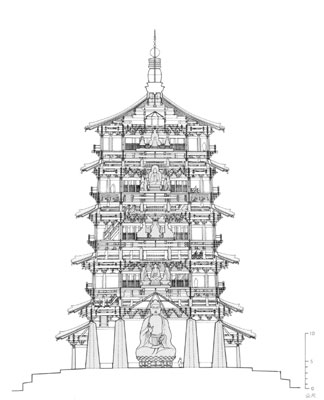 山西應(yīng)縣佛宮寺釋伽塔剖面圖