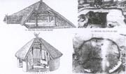 居住區(qū)內(nèi)居住建筑有平面圓形和方形兩種。就建筑風格及構造方式而言,又可分為半穴居式和地面木架建筑式。