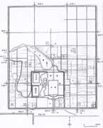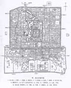 元大都是以宮城,皇城為中心布置的。因?yàn)榈貏萜教,又是新建,所以道路系統(tǒng)規(guī)整砥直,成方格網(wǎng)。城的輪郭接近于方形,城市的中軸線就是宮城的中軸線。全城道路分為“干道”和“胡同”兩類:干道寬約25米,胡同6—7米。胡同都是東西向,前后兩條胡同間距約為50步,在兩胡同間的地段上再劃分住宅基地。這種有規(guī)律的街巷布置,和唐以前的里坊,形成兩種不同的居住區(qū)處理方式。