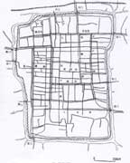 江南水網(wǎng)地區(qū)以水運(yùn)為主,街道房屋兩岸布置,故小市鎮(zhèn)常沿河展開成帶狀,大市鎮(zhèn)因十字形、井字形交叉河道而成塊狀。著名的古城蘇州,城內(nèi)河道縱橫,可稱是水鄉(xiāng)地區(qū)城市布局的典型。該城始建于春秋末年吳王闔閭時(shí)(公元前514年),秦漢以后,城址基本上保持沿用下來。根據(jù)考古發(fā)掘及文獻(xiàn)記載,可知城墻位置與河道系統(tǒng)是唐以前就形成的。
