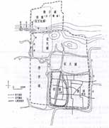 揚州的居住區(qū),由許多庭堂式的民居組成,多成長條形。住宅內部的布置因大門的朝向不同而各異,舊城區(qū)道路仍以十字形干道為主,形成方格網(wǎng)道路系統(tǒng)。新城區(qū)道路系統(tǒng)則成不規(guī)則形。