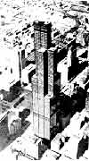 美國芝加哥的一幢辦公樓,SOM建筑設(shè)計(jì)事務(wù)所設(shè)計(jì),1974年建成,高443米,是當(dāng)今世界最高建筑物之一。總建筑面積418000平方米,地上110層,地下3層。底部平面68.7×68.7米,由9個22.9米見方的正方形組成。在這些正方形的范圍內(nèi)都不另設(shè)支柱,租用者可按需要分隔。整個大廈平面隨層數(shù)增加而分段收縮。在51層以上切去兩個對角正方形,67層以上切去另外兩個對角正方形,91層以上又切去三個正方形,只剩下兩個正方形到頂。