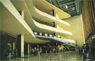 大廈1947年動工,1953年建成(紐約聯(lián)合國總部大廈,早期板式高層建筑,1947~1953年建,W.K.哈里森等設(shè)計(jì))。 大廈占地7.2公頃。居中為大會堂,供聯(lián)合國大會使用。設(shè)計(jì)時,會員國不多,按遠(yuǎn)期會員國80個和每會員國代表5人、顧問5人考慮,并加設(shè)特別觀察員席和貴賓席300個,記者席320個,聽眾席1000個。大廳內(nèi)墻為曲面,屋頂為懸索結(jié)構(gòu),上覆穹頂。南面為39層的聯(lián)合國秘書處大樓,是早期板式高層建筑之一,也是最早采用玻璃幕墻的建筑。前后立面都采用鋁合金框格的暗綠色吸熱玻璃幕墻,鋼框架挑出90厘米;兩端山墻用白大理石貼面。大樓體形簡潔,色彩明快,質(zhì)感對比強(qiáng)烈。東河沿岸為一組五層會議樓建筑,分設(shè)各理事會大廳。臨42號街的舊建筑曾作為聯(lián)合國圖書館,1961年拆除重建。