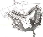 巴西利亞規(guī)劃頗具特色。城市布局骨架由東西向和南北向兩條功能迥異的軸線相交構(gòu)成,平面形狀猶如有后掠翼的飛機(jī)。 東西向的主軸線長6公里,東段布置巴西中央政府各部的辦公大樓,嚴(yán)整地排列在大道兩側(cè)。主軸線東端是三權(quán)廣場廣場平面基本呈三角形,議會大廈、最高法院和總統(tǒng)府鼎足而立;在布局構(gòu)圖上、建筑空間上都是視線集中的地方。主軸線西段主要布置市政機(jī)關(guān),西端是城市的鐵路客運(yùn)站。 南北向軸線呈弧形的翼狀,兩翼各長5公里許,有一條主干道貫穿其間,與公路連接。主干道兩旁布置著長方形的居住街區(qū)。每一街區(qū)內(nèi)有高層、多層的公寓以及商店等設(shè)施,布置格式基本統(tǒng)一。城市兩條主軸線的交匯處,有一座 4層的大平臺,在不同層次上形成立體交叉道口,以疏導(dǎo)各個方向的交通。在這里設(shè)立全市的商業(yè)中心、文化娛樂中心,公共客運(yùn)也大多在這里轉(zhuǎn)站換乘。稍西有體育場。東西軸線的南北兩片地段分設(shè)動物園和植物園。城市的北、東、南三面有人工湖圍繞,人工湖附近散布著若干片獨(dú)戶住宅區(qū)。城市有少數(shù)小型工廠,布置在火車站的一側(cè)。