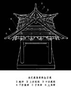 殿堂結(jié)構(gòu):全部結(jié)構(gòu)按水平方向分為柱額、鋪?zhàn)、屋頂三個(gè)整體構(gòu)造層,自下至上逐層安裝,疊壘而成。如造樓房,只須增加柱額和鋪?zhàn)鲗樱ㄆ阶┘纯伞?yīng)用這種結(jié)構(gòu)的房屋,平面均為長(zhǎng)方形。有四種地盤分槽形式,即金箱斗底槽、雙槽、單槽和分心斗底槽。