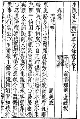 汪氏環(huán)翠堂刻印的《坐隱先生精訂草堂余意》