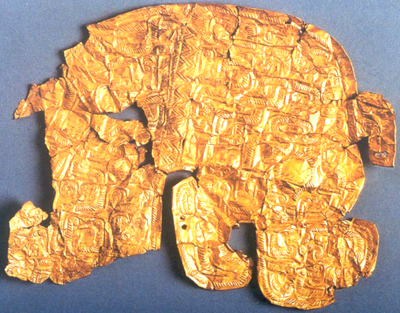 蟠螭紋獸首殘金飾片