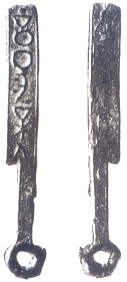 三晉地區(qū),主要是趙國,為了適應(yīng)與齊燕接壤地區(qū)商業(yè)交往的需要,曾鑄行過刀幣。其典型型制為刀身平直,圓首,柄間正面有兩直線或一直線,背面有一直紋或無紋,柄端環(huán)形,這種刀稱“直刀”或“圓首刀”。有大、小兩種,大者一般長約14厘米,重10至12克;小者減重至6.9克左右,長約10厘米。刀正面皆鑄地名。魏國所鑄“