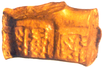 安徽臨泉出土。戰(zhàn)國。略呈五邊形,四邊為原切割的痕跡,正面壓印半方印銘“陳爰”篆書。陳為楚都,此金幣為都陳時所鑄。