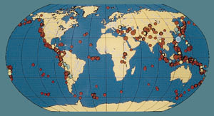 環(huán)太平洋地震帶:即太平洋的周邊地區(qū),包括南美洲的智利、秘魯,北美洲的危地馬拉、墨西哥、美國等國家的西海岸,阿留申群島、千島群島、日本列島、琉球群島以及菲律賓、印度尼西亞和新西蘭等國家和地區(qū)。這個地震帶是地震活動最強(qiáng)烈的地帶,全球約80%的地震都發(fā)生在這里。