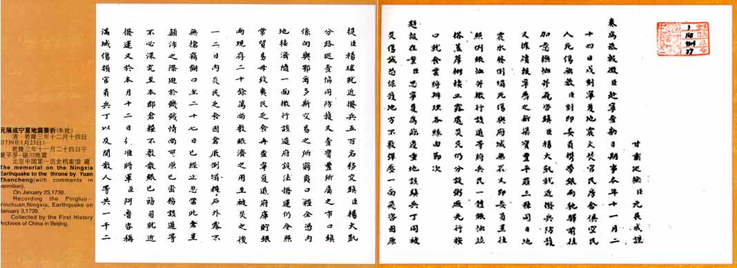 朱批元展成寧夏地震奏折