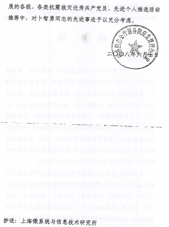 國(guó)務(wù)院應(yīng)急辦公室專門為救援隊(duì)發(fā)來的感謝信