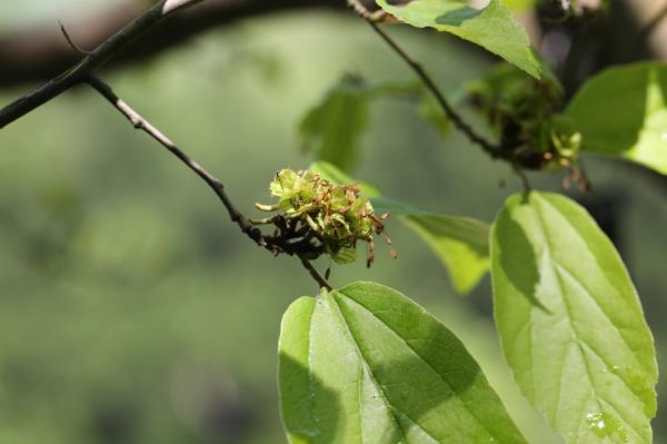 銀縷梅樹上的病蟲害較多,有時(shí)在樹干和枝干上會(huì)有害蟲寄生,受危害的韌皮部則會(huì)逐漸形成木質(zhì)化的蟲癭,形似葫蘆或木魚,據(jù)說干燥后敲擊還會(huì)發(fā)出清脆的響聲。因此,民間也稱銀縷梅為“葫蘆樹”和“木魚樹”。