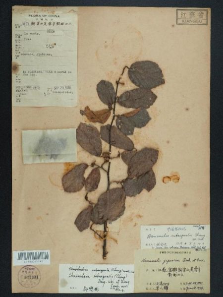 直到1954年,已成為著名植物學(xué)家的單人驊教授在整理標(biāo)本時(shí)發(fā)現(xiàn)了這份采集號(hào)為“沈雋958”的標(biāo)本,認(rèn)為此樹種是金縷梅科中的一員,形態(tài)上與日本的金縷梅相似,但還缺乏花枝標(biāo)本,難以定論,就暫定日本金縷梅(Hamamelis japonica Siebold & Zucc.)。