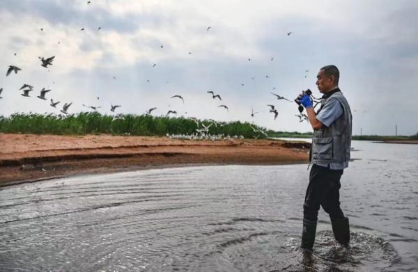 圖3 陜西省動物研究所肖紅研究員20年如一日堅持在紅堿淖從事遺鷗研究工作