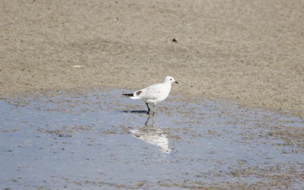 圖6 在定邊縣鹽湖灘涂邊覓食的亞成體遺鷗