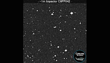 格林尼治時(shí)間6時(shí)12分(當(dāng)?shù)貢r(shí)間凌晨2時(shí)12分,距離小行星撞擊約2.2小時(shí)),在G96、703和I52望遠(yuǎn)鏡各自完成了4次觀測后,卡特琳娜巡天系統(tǒng)確認(rèn)了這顆近地小行星撞擊地球的概率將到達(dá)100%,也測量出來這顆小行星的絕對星等為33.5,這意味著這顆小行星尺寸可能不足1米——這種尺寸的小行星會(huì)在大氣層中燒掉、不會(huì)對地面造成任何威脅。這些數(shù)據(jù)被同步到國際小行星中心網(wǎng)站,美國宇航局的“偵察兵”系統(tǒng)也對這些數(shù)據(jù)進(jìn)行了分析。