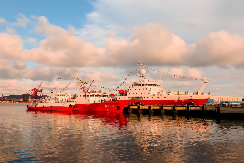 國慶前夕,“科學”號、“科學三號”和“創(chuàng)新二”號三艘海洋科學綜合考察船難得相聚在母港,身披彩旗,整齊排列,慶祝祖國華誕73周年。