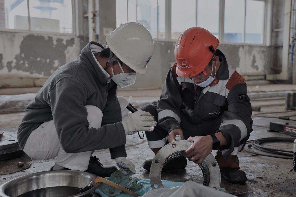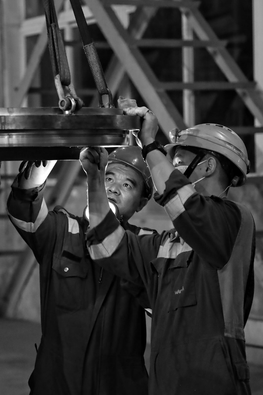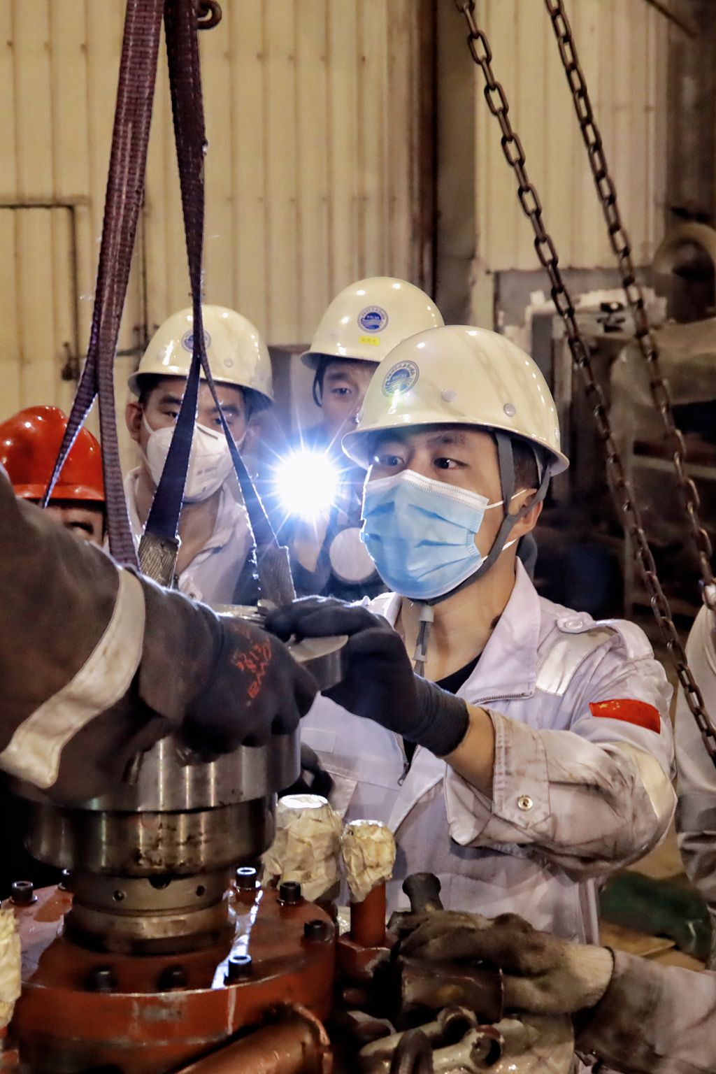 該組照片拍攝于2022年“科學”輪在大連遼南船廠塢修期間?!翱茖W”輪已交付運行十年,前部艏側推需拆解維保,此項工作有非常多的技術難題?!翱茖W”輪輪機部工作人員會同瓦錫蘭及船廠一起,發(fā)揚“特別能吃苦,特別能戰(zhàn)斗,特別能攻關”的精神,通宵達旦,攻堅克難,連續(xù)奮戰(zhàn)十多個日夜,最終完滿完成塢修任務,進一步提升了船舶安全航行和科考作業(yè)的技術保障條件。