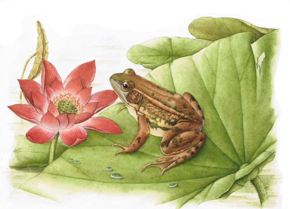 圖2湖北側褶蛙(學名: Pelophylax hubeiensis),是中國特有物種。頭寬大于頭長,鼓膜大而明顯,背面及體側皮膚光滑或有小疣粒,背側褶較寬厚,生活時體背面顏色變異較大,一般多以淺棕色為主,混雜綠碎斑,腹面鮮黃色,股腹面有棕色斑。