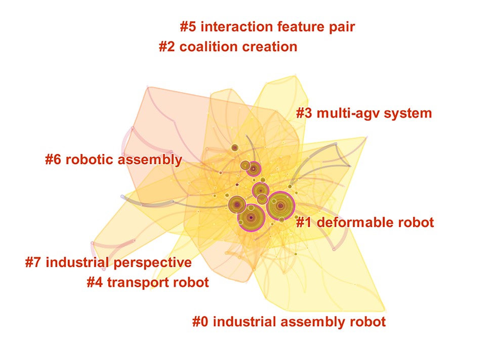 獲得方法:通過(guò)Web of Science 導(dǎo)出組裝機(jī)器人的相關(guān)文獻(xiàn)數(shù)據(jù),通過(guò)可視化知識(shí)圖譜軟件進(jìn)行關(guān)鍵詞聚類分析獲得。