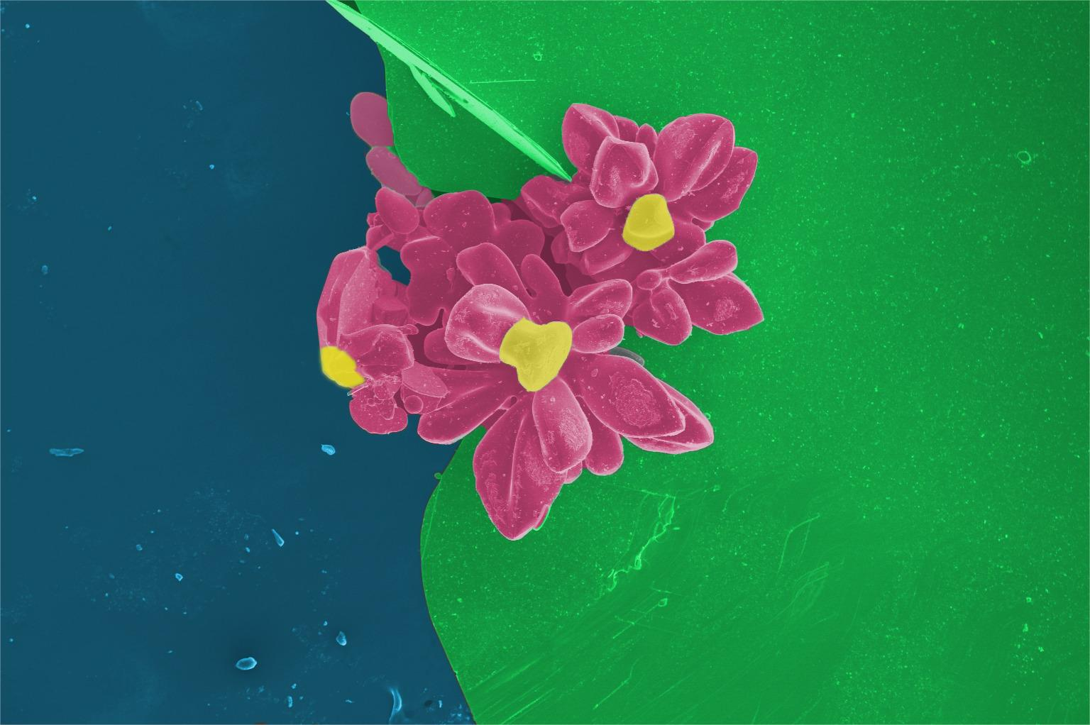 我們利用化學(xué)氣相輸運法(CVT)生長出的單晶,通過FEI Apreo掃描電子顯微鏡觀察其形貌,我們發(fā)現(xiàn):池塘之畔,蓮花盛開,倩影倒映于碧波之中,細(xì)膩的葉脈如羽翼般輕盈,宛如一幅紋理精致的畫作。微風(fēng)輕拂,蓮葉跳動著輕盈的舞步,驕傲地向世人展示出韻律與動感。這一刻,科學(xué)研究的撲朔迷離與自然界的絢麗多彩交織纏綿,折射自然之美和科技之光。