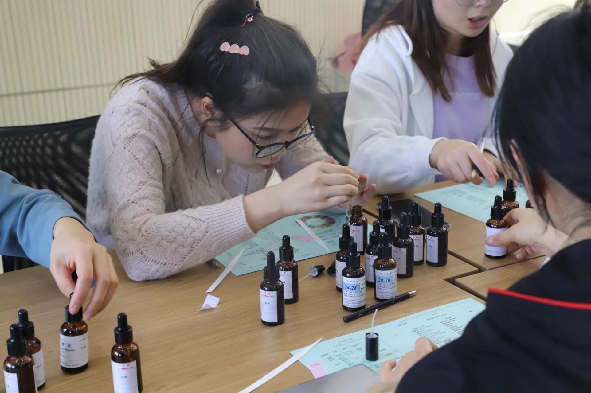 在專業(yè)老師的指導下,學習香水調(diào)制設計知識。用20多種種純天然植物基礎香精調(diào)配設計出專屬自己的香味,建立自己的香水檔案,生成自己的芳香密碼,留下調(diào)制香水的美麗體驗。香水DIY調(diào)制活動結(jié)束后每位參與者可以帶走自己制作的香水。