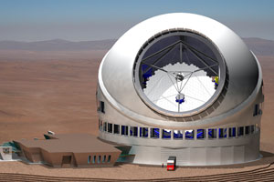 備注:截止2009年3月,TMT項目已經(jīng)完成了初步設計階段,并已在美國夏威夷開始初期的基礎建設。TMT有效通光口徑為30米,結(jié)構設計上采用了雙耐氏焦點,Ritchey-Chrétien光學系統(tǒng)。2009年11月,中國科學院國家天文臺及其相關機構以觀察員的身份加入國際三十米望遠鏡(TMT)項目。
