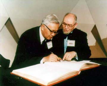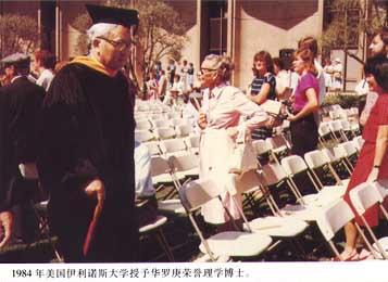 1982年4月27日華羅庚被美國科學(xué)院選為外籍院士,這是美國科學(xué)院120年歷史上第一次把這個(gè)榮譽(yù)稱號授予一位中國科學(xué)家。他于1984年4月去參加美國科學(xué)院院士會議,他在簽名冊上用中文簽了名。