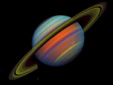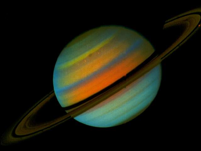 土星的偽彩色照片,明亮的色彩顯示出土星北部的溫度帶