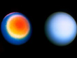 天王星,左側(cè)的是偽彩色照片,右側(cè)為真彩色照片