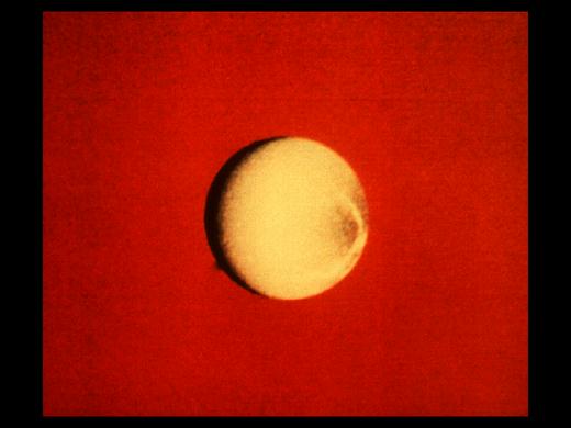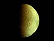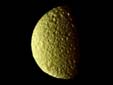 土衛(wèi)三表面被冰層覆蓋,冰上有條長2360千米的裂縫和一直徑約400千米、深16千米的撞擊坑。