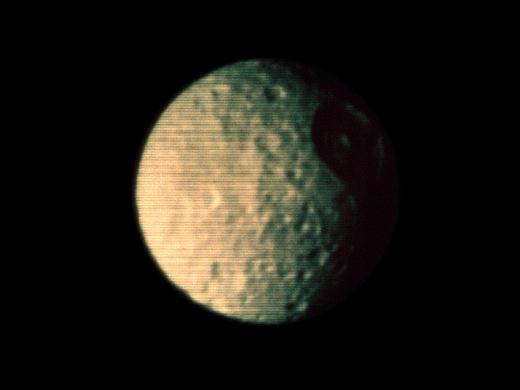 土衛(wèi)五直徑約1530千米,表面有許多環(huán)形山,類似月球和水星。
