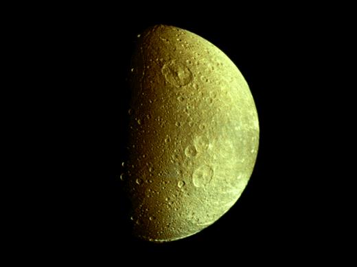 土衛(wèi)四直徑約1120千米,上面有眾多的隕坑。在它的軌道上還有伴星土衛(wèi)四B,它超前土衛(wèi)四60°,位于土衛(wèi)四與土星的引力平衡點上。而在土衛(wèi)四B附近還有顆更小的伴星。