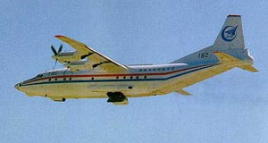運(yùn)-8是中國(guó)陜西飛機(jī)制造公司研制的四發(fā)渦輪螺槳中程多用途運(yùn)輸機(jī),具有空投、空降、空運(yùn)、救生及海上作業(yè)等多種用途。1969年開(kāi)始由西安飛機(jī)工業(yè)公司設(shè)計(jì),1974年12月25日01號(hào)機(jī)首次試飛成功,之后西安飛機(jī)工業(yè)公司將02、03號(hào)兩架飛機(jī)散裝件以及技術(shù)資料和專用部分工藝裝備等轉(zhuǎn)至陜西飛機(jī)制造公司繼續(xù)試制。02、03號(hào)飛機(jī)分別在1975年12月和1977年1月試飛成功,1980年1月國(guó)家批準(zhǔn)設(shè)計(jì)定型后轉(zhuǎn)入小批量生產(chǎn)。